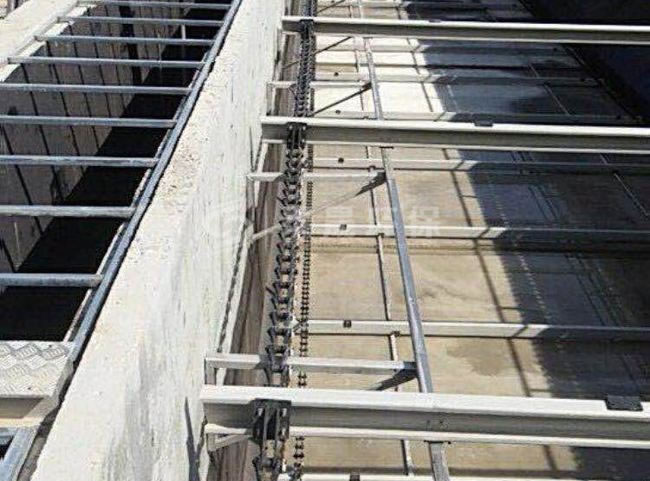 LGN 链条式刮泥撇渣机适用于平流式沉淀池、隔油池的排泥、除油和除渣,它也可以安装在带顶盖的池内。